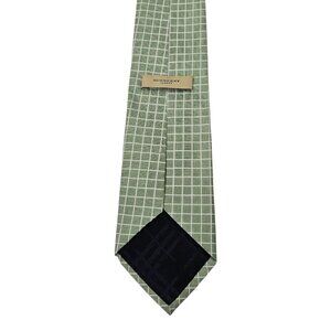 Burberry London Neck Tie Silk Geometric Green Textured Grid 58.5" Made in Italy