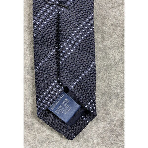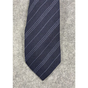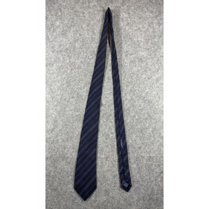 Burberry London Necktie Mens Navy Pure Silk Woven Striped Hand Made in England