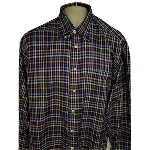 Burberry London Men's Plaid Button Front Shirt Large Lightweight Relaxed Cotton Made in USA Logo. Great Pre-Owned Condition Gently Worn. Ships from smoke free home.