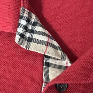Burberry London Polo Shirt XXL Red Nova Check Collar 100% Cotton Classic Fit