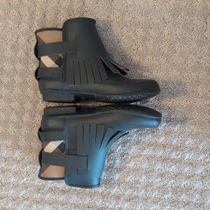 Burberry rain boots UK size 35 dark green with fringe gold buckles and Nova check print excellent barely used like new condition