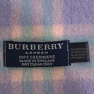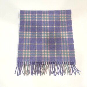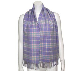 Burberry London Scarf Purple Plaid 100% Cashmere Fringe Made in England Vintage