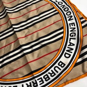 Burberry London Tan Black Orange White Square Scarf 45 x 45cm 100% Silk Italy
