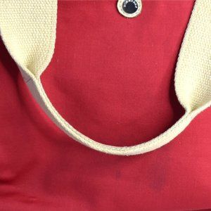 Burberry London Tote Bag Red Large Pockets Canvas Snap Closure