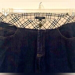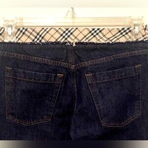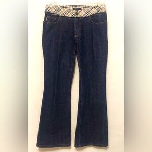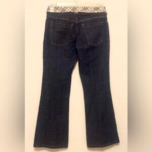 Burberry London UK 8 Dark Denim Pants Jeans Boot Cut Check Tartan Plaid Waist