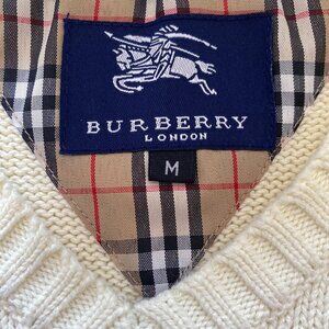 Vintage Burberry London v-neck sweater vest in ivory/cream, size M.