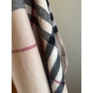 Vintage 100% Cashmere Fringe Classic Burberry London Shawl, I used it as a baby blanket but meant to be a shawl can be used as a lap blanket/oversized scarf/shawl. This is not new its VINTAGE purchased over 33yrs ago sold as is Please see photos scarf has tiny pinholes thru out but this is still a very beautiful vintage piece holes do not take from its beauty.