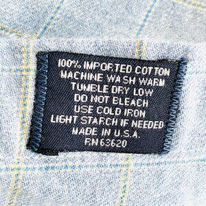 Burberry London windowpane plaid button down dress shirt in men's size XL. USA made of 100% cotton in a soft blue/gray. Measures 28" armpit to armpit, 32.5" neck to tail, 25" sleeve. Excellent condition with no holes, tears, stains, or ripped seams. Smoke free, pet friendly home.