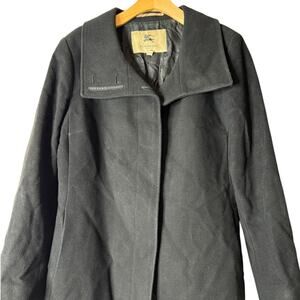 Burberry London Women UK 14 US 12 Black Wool Cashmere Stand Collar Long Coat