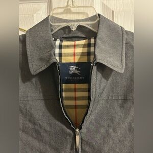 Burberry London Women’s Collared Grey Zip Up Jacket with Plaid Lining - S