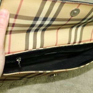 Crafted with the modern woman in mind, the Burberry London NovaCheck pattern handbag marries sophistication with practicality. This beige shoulder bag, made from high-quality coated canvas, offers a sleek and durable exterior that's sure to complement any casual ensemble. Its signature check pattern is a nod to timeless style, while the contrasting black leather handle and strap provide a comfortable carry and a touch of elegance. The bag is thoughtfully lined with a black fabric that protects your belongings and includes inner pockets to keep essentials organized. The zip closure ensures your items are secure, and the silver hardware adds a subtle shine that coordinates effortlessly with your other accessories. Whether you're out in London or simply enjoying a day around town, this Burberry handbag is an understated yet chic choice for any occasion.