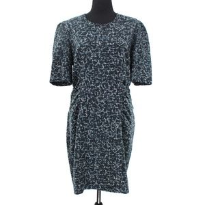 Burberry London Wool Blend Black Blue Abstract Print Shift Mini Dress 12
