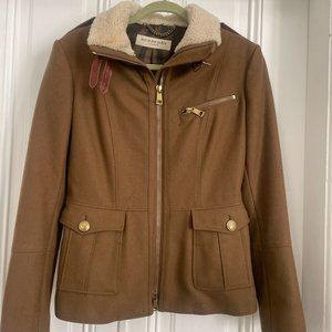 Burberry London Wool Brown Jacket w/ Shearling Collar US10