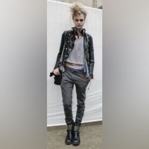 Very glam or wear for a Grunge punk vibe. A belted and quilted design for a puffer leather style. Chunky silver zippers. Ptp 21”, length 25”. Excellent pre owned condition with authentication from The Real Real tag still attached. Questions? Leave a comment below!