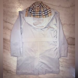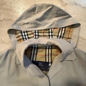 Classic and timeless Burberry trench coat featuring the iconic Nova Check lining inside the hood and upper body. This vintage piece is a rare find and perfect for adding a touch of sophistication to any outfit.