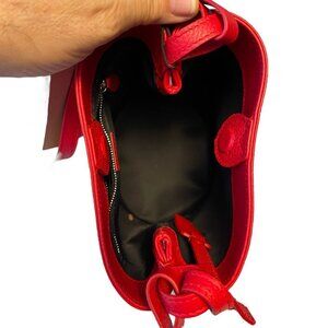Burberry Lorne Red Pebbled Leather Bucket Crossbody Handbag Purse Bucket Bag