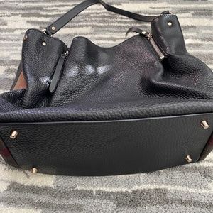 Burberry grained leather and signature check canvas tote bag.