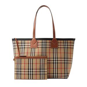 This London Tote Bag is crafted from cotton in a canvas weave, featuring a twin shoulder straps, open top, all-over check motif, Interior detachable pocket and one main compartment. Dimensions: W 20.2" x H 11.4" x D 7.3" Made in Italy.