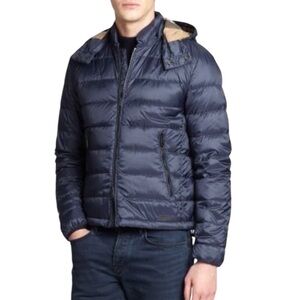 Stay warm and stylish with this sleek Burberry black puffer jacket. Perfect for chilly days, it offers comfort and a modern look.