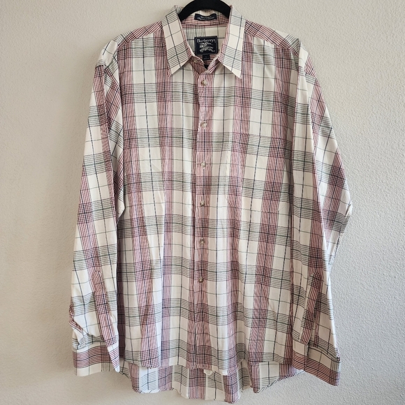 Burberry Mens Button Up Shirt Long Sleeve Plaid Collared Preppy White Red Size L