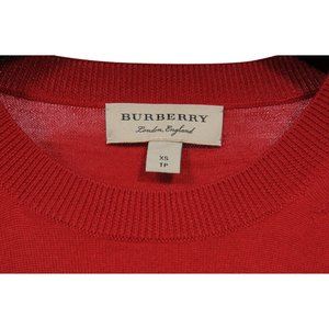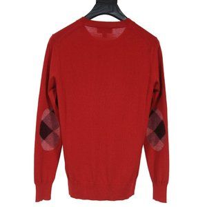 Burberry Mens Crewneck Sweater Size XS Red Wool Pullover Checkered Elbow Patch