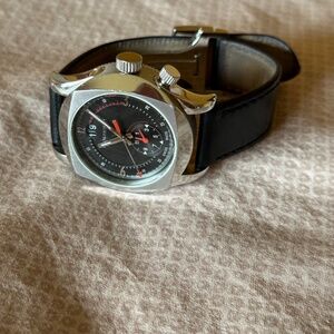 Burberry Mens Dual Time Watch BU7601 Stainless Steel and Leather