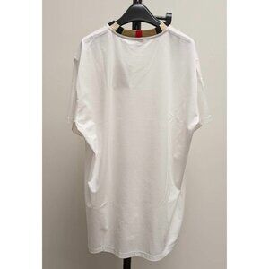 -The Burberry Icon Stripe Trim White Cotton T-Shirt is a short-sleeved T-shirt designed by the fashion brand that features elements of its iconic check pattern as an accent around the neckline.