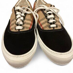 Authentic Burberry men's size EU 44 / US 10.5 (per Burberry's shoe size chart) sneakers. The classic British checkerboard tartan plaid on full display. Excellent used condition. Only worn once.