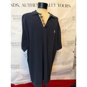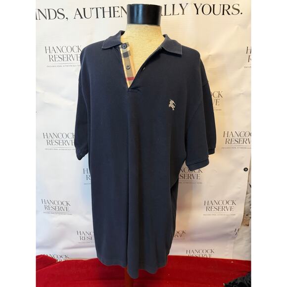 Burberry Men’s Polo Shirt XXL Navy Nova Check Placket Short Sleev