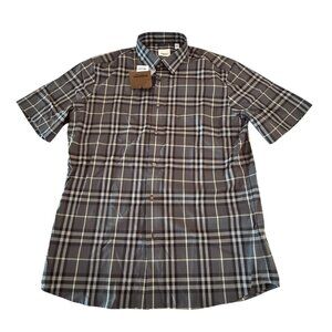 Burberry Men's SHEFFORD Gray Check Short Sleeve Shirt 8084691