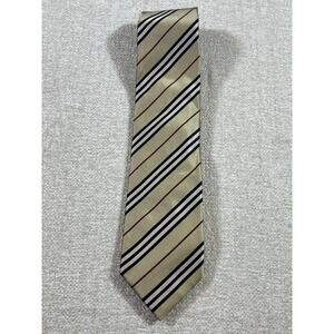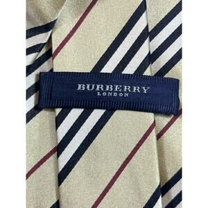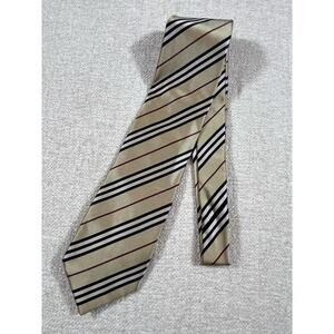 Burberry Mens Tan Striped 100% Silk Necktie 59" × 4" Classic Designer Tie Luxury