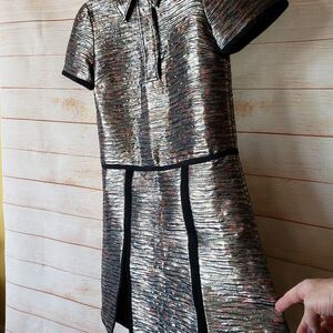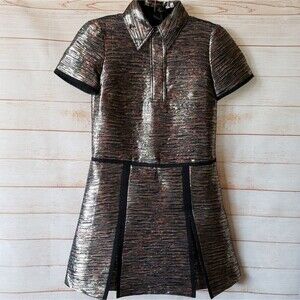 Burberry Metallic Pleated Floral Print Mini Dress Rare! Short Sleeves Women's 2