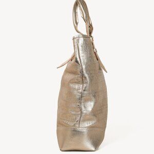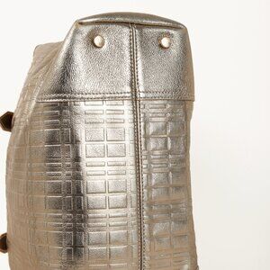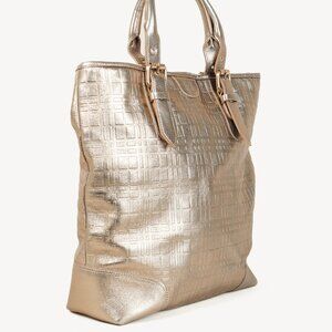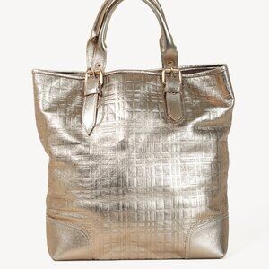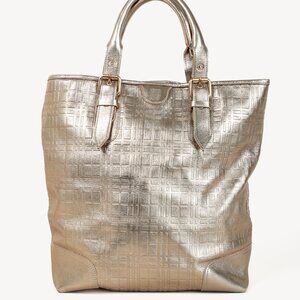 Burberry Metallic-Gold Plaid-Embossed Leather Tote Bag