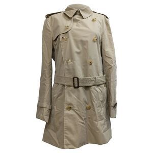 Elevate your outerwear collection with the Burberry Mid-Length Kensington Heritage Trench Coat in Beige Cotton, a timeless icon of British tailoring. The classic silhouette, signature gabardine fabric, and neutral beige tone make it a versatile piece for any wardrobe. Styling tip: Layer over a crisp shirt and tailored trousers for a polished, professional look, or wear with dark jeans and boots for a refined yet casual ensemble.