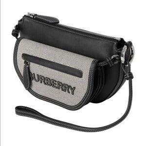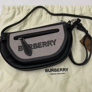 Burberry Mini Double Olympia Logo Appliqué Canvas & Black Leather Bag Dust Bag