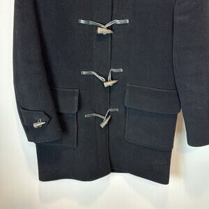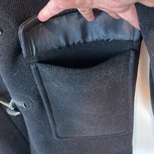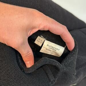 Gently Used Burberry Minstead Wool Toggle Hooded Coat. This is a women's 8 / UK 10. Very dark navy blue or black throughout. Unique tooth looking closures. Oversized front pockets, one of which was recently repaired by Burberry Mall of America. Confirmed authentic. 100% wool. Stylish, extremely high quality coat that could last a lifetime!
