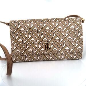 🤎 Burberry Monogram TB Leather Crossbody Bag – Beige/Tan