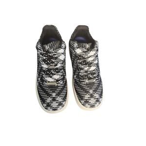 Low-top knit stretch nylon sneakers in black and white. Jacquard check pattern throughout.