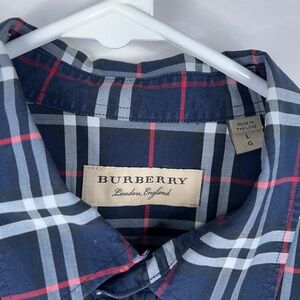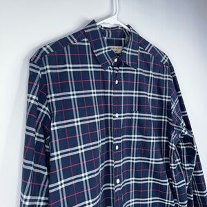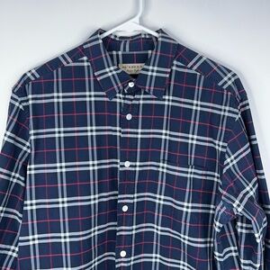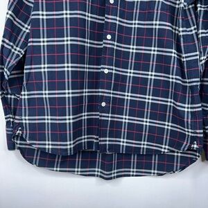 Burberry Navy Blue Red Nova Check Button Down Shirt Long Sleeve Cotton Large