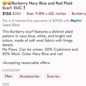 🤩🤩Burberry Navy Blue and Red Plaid Scarf. EUC❗️