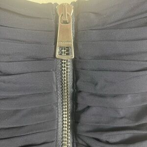 Burberry ruched sleeveless top in navy Tiny tag hole (hard to notice) 96% viscose 4% elastane Pit to pit: 15-16” Good condition Zips up back Thick straps
