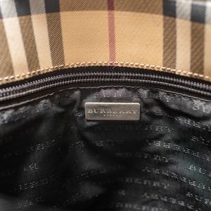 Authentic Burberry Bucket Tote handbag in great condition. Two adjustable shoulder straps, with two inside zippered pockets. Dimensions of bag 11 1/2" tall, 10 inches wide or with straps 22" tall. Please note scuff marks on base of bag. Great condition.