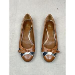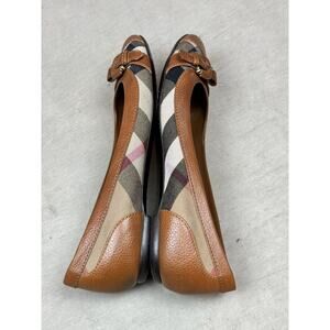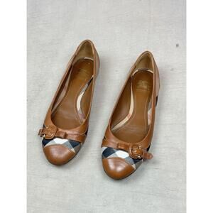 Burberry Nova Check Canvas Brown Leather Buckle Ballet Flats Size 39 8.5/9
