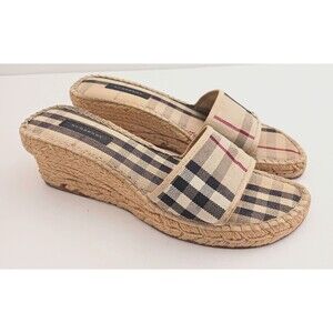 Burberry Nova Check Canvas Espadrille Slide Wedge EU 39 US 8-8.5 Made in Spain