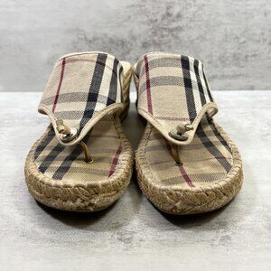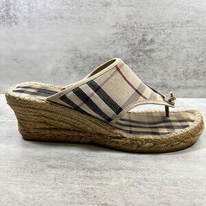Burberry Nova Check Canvas Espadrille Thong Wedge Sandals - Women's EU 38 / US 8