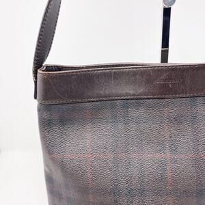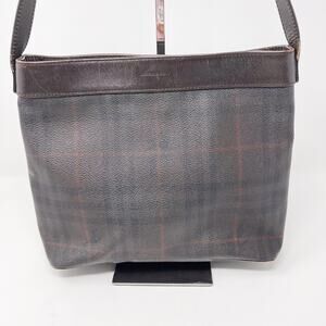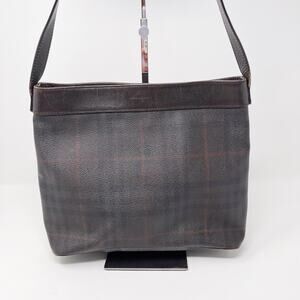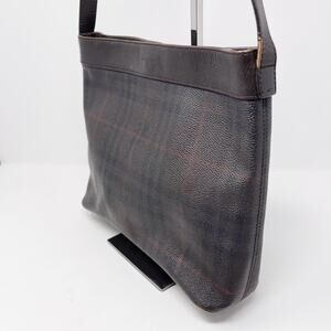 Burberry Nova Check Leather Shoulder Bag Leather Trim Brown Gold Tone Hardware