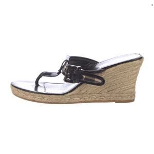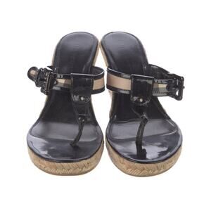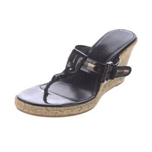 Burberry Nova Check Patent Leather Thong Espadrille Wedges IT 41/US 10.5