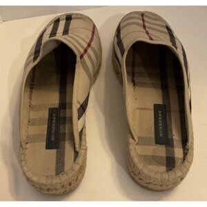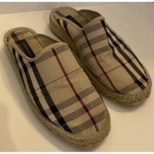 Burberry Nova Check Plaid Espadrille Mules Flats Size 38 US 8