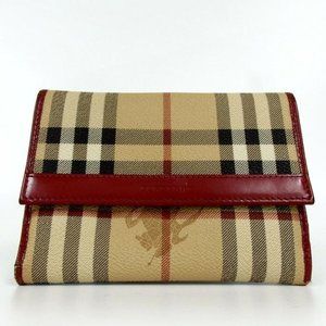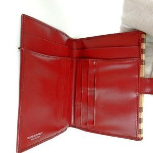 Burberry Nova Check Plaid Red Leather Wallet