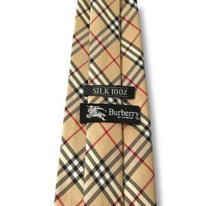 Burberry Nova Check Plaid Silk Tie Italy Tan Red Black Classic Handmade